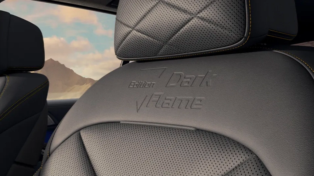 Кроссовер оснащен новыми 22-дюймовыми черными колесами и черными спортивными суппортами. На дверных порогах нанесен эксклюзивный логотип Dark Flame.