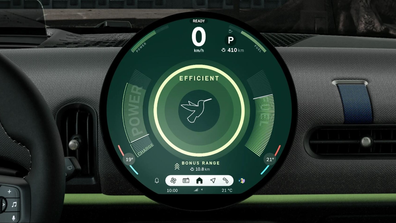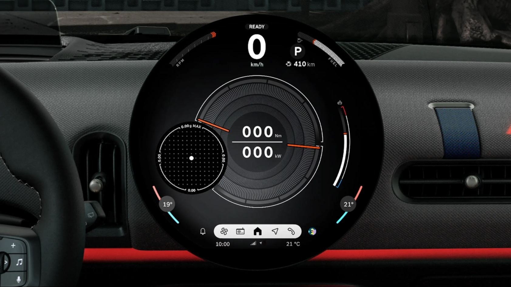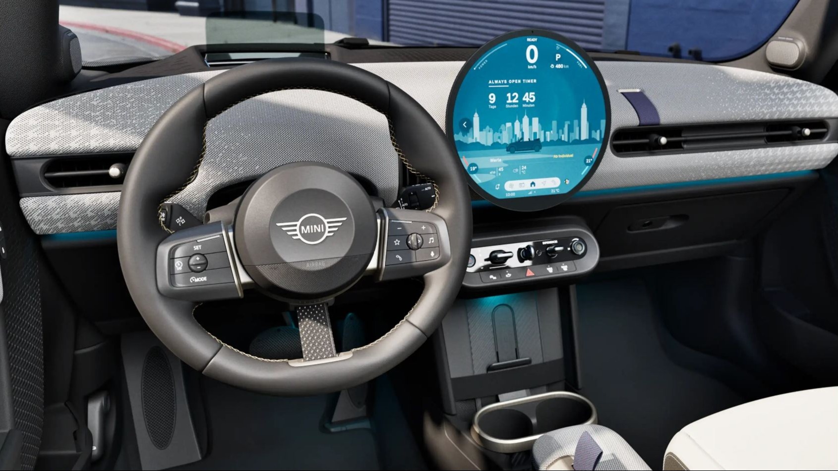 Центральное место в салоне занимает потрясающий 240-миллиметровый круглый OLED-дисплей с высококачественным стеклом. Он служит идеальным окном доступа в мир навигационных и информационно-развлекательных функций MINI Connected и систем помощи водителю. Также он собирает все впечатляющие возможности MINI в интуитивном центре управления.