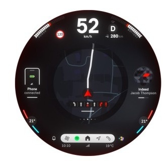 Сердцем и фокусом приборной панели является совершенно новый, потрясающе тонкий центральный дисплей. Использование современной технологии OLED диаметром 240 мм из высококачественного стекла придает ему характерный минималистичный внешний вид. Он служит приборной панелью, а также бортовым информационно-развлекательным и вспомогательным центром. А круглый OLED-дисплей является первым в мире.
