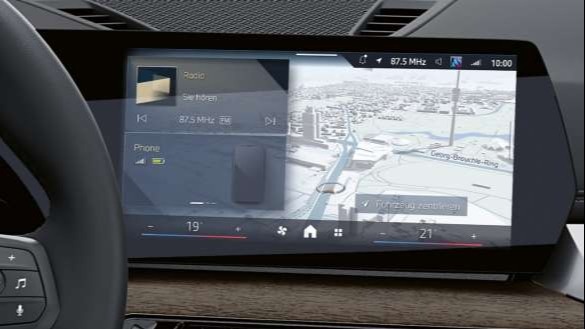 - Современная мультимедийная приборная панель с инновационным изогнутым дисплеем BMW с сенсорной и голосовой системой управления.