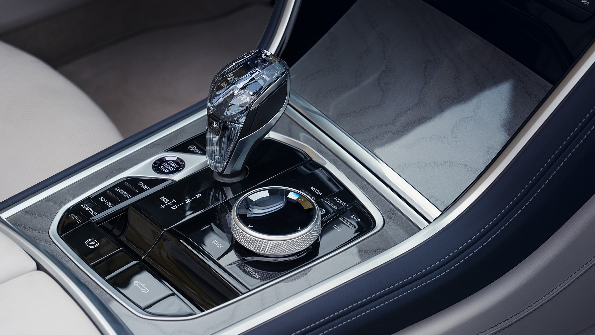 - Элегантный рычаг селектора со стеклянной отделкой CraftedClarity.